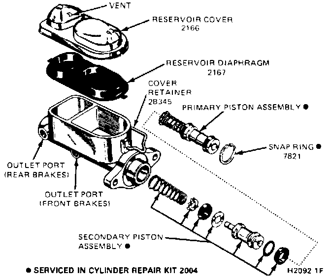 b. If bore is not damaged, rebuild master cylinder assembly using the proper repair kit and the procedure outlined below.