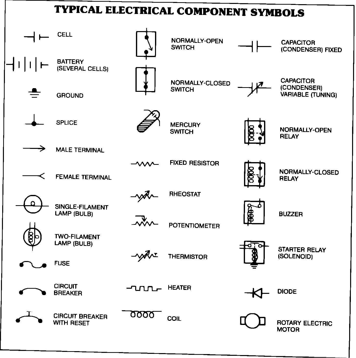 TYPICAL ELECTRICAL COMPONENT SYMBOLS:
