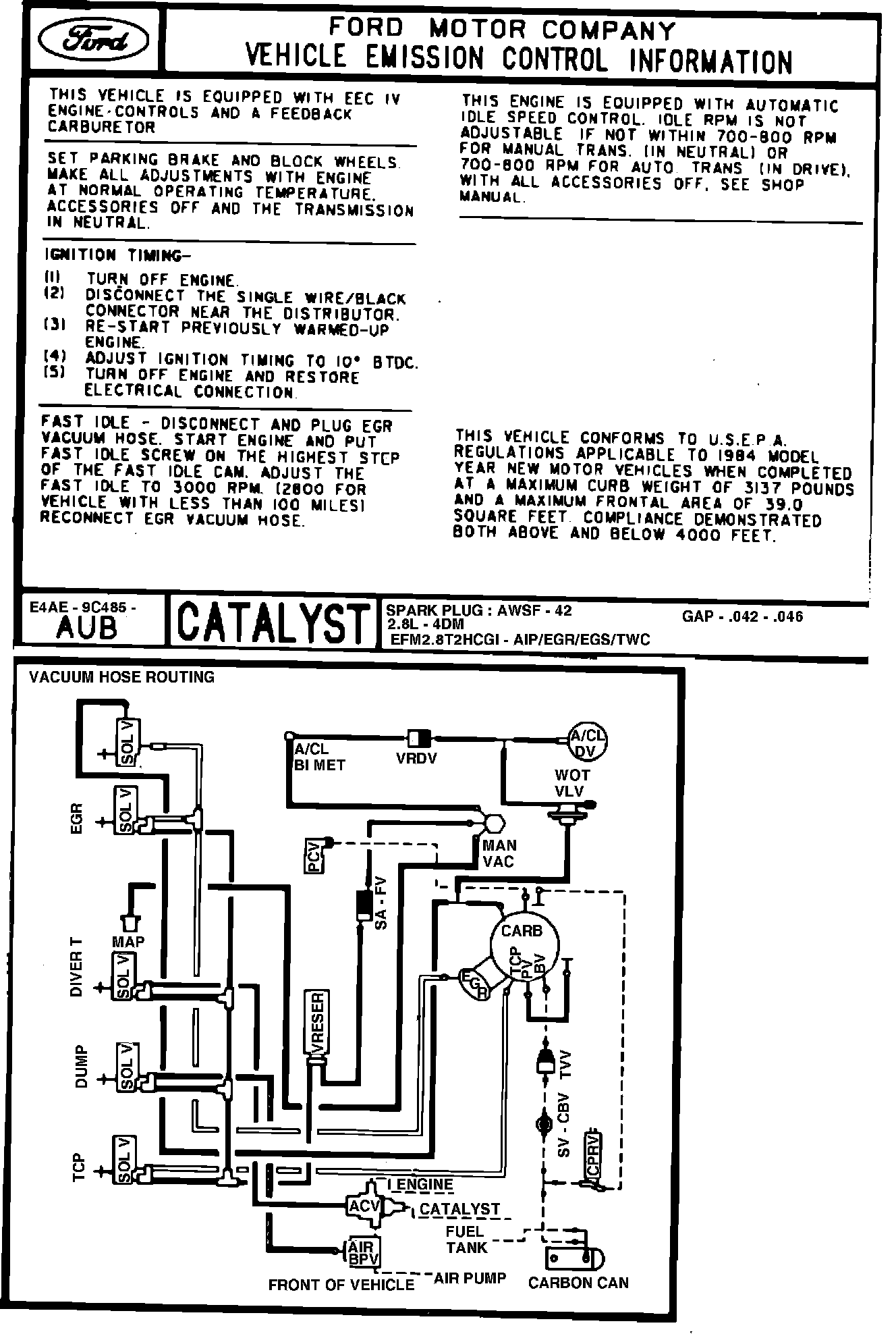 MODEL YEAR: 1984 ENGINE: 2.8L