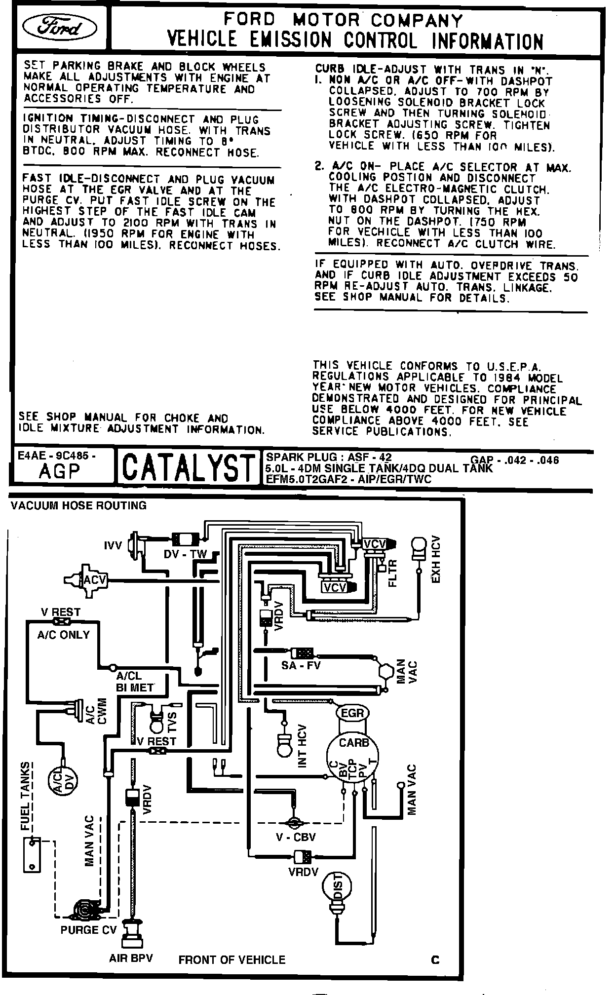 MODEL YEAR: 1984 ENGINE: 5.0L