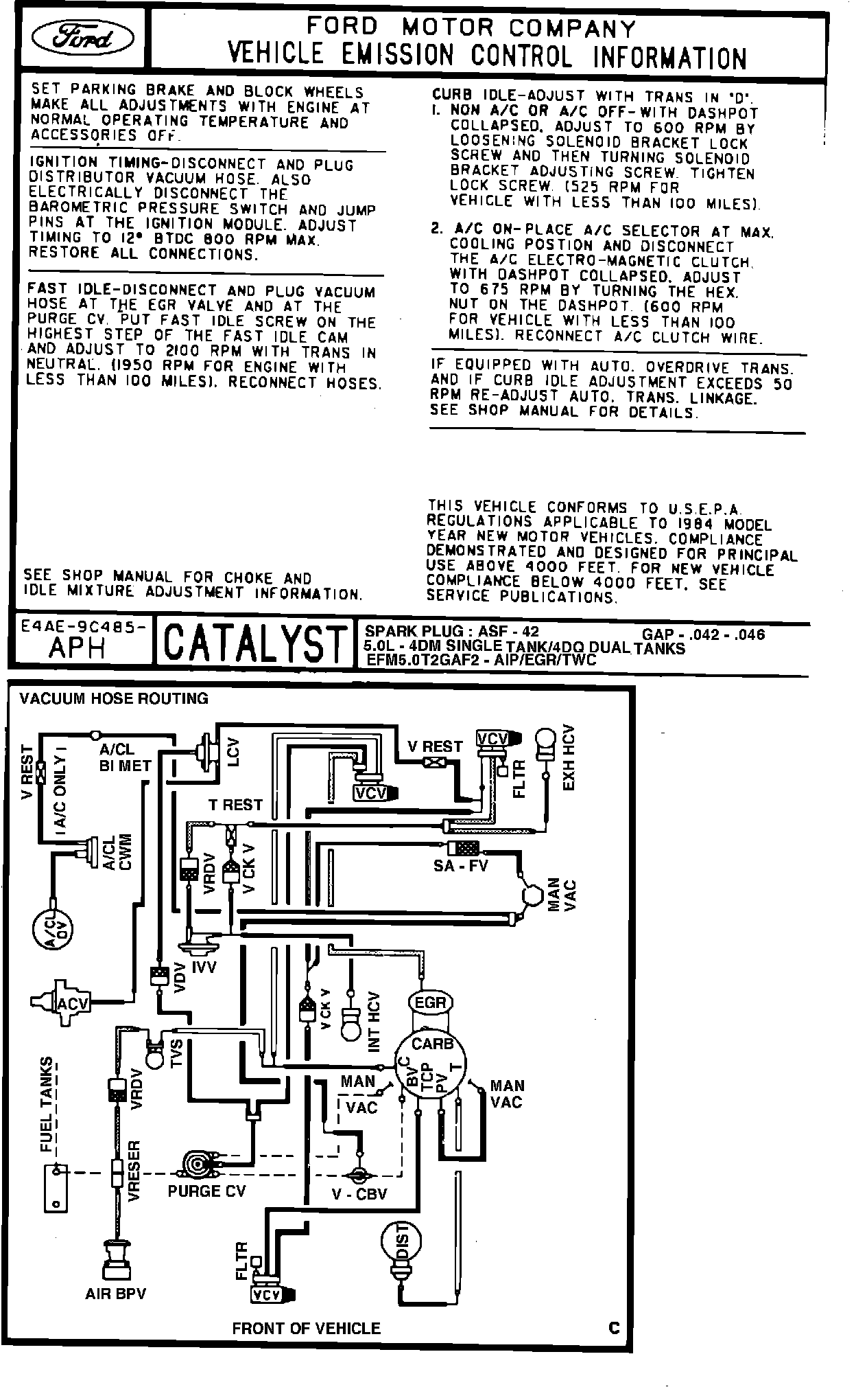 MODEL YEAR: 1984 ENGINE: 5.0L