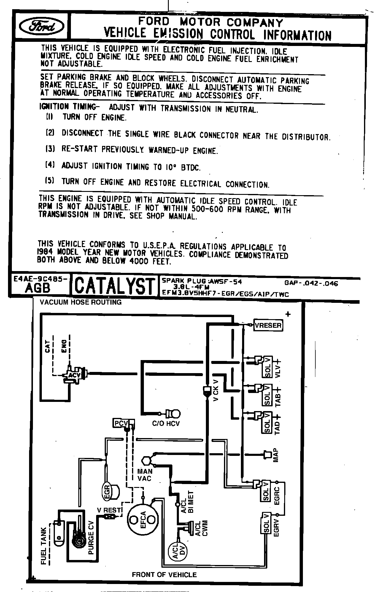 MODEL YEAR: 1984 ENGINE: 3.8L