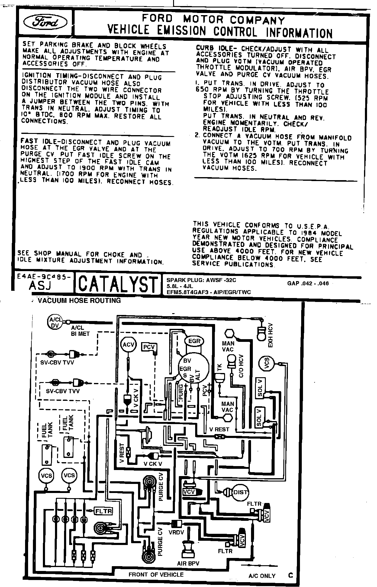 MODEL YEAR: 1984 (E Series) ENGINE: 5.8L