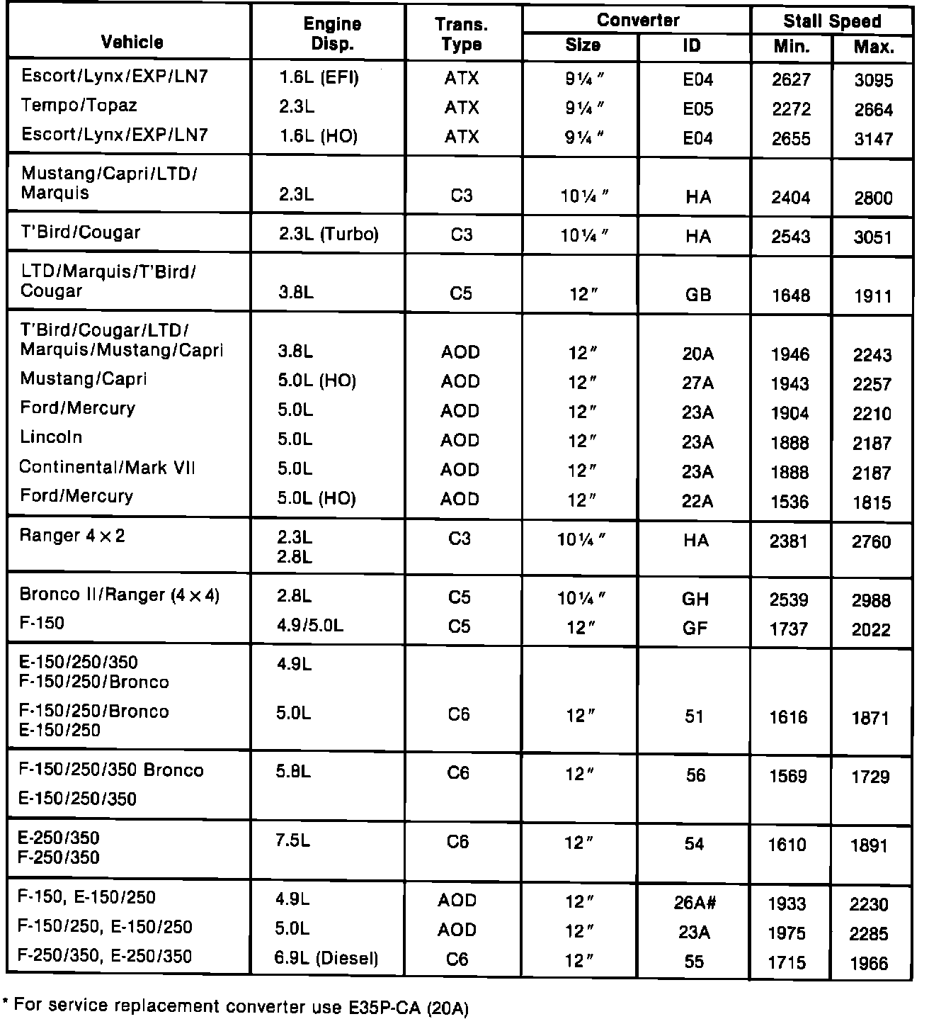 1984 Stall Speed Specifications
