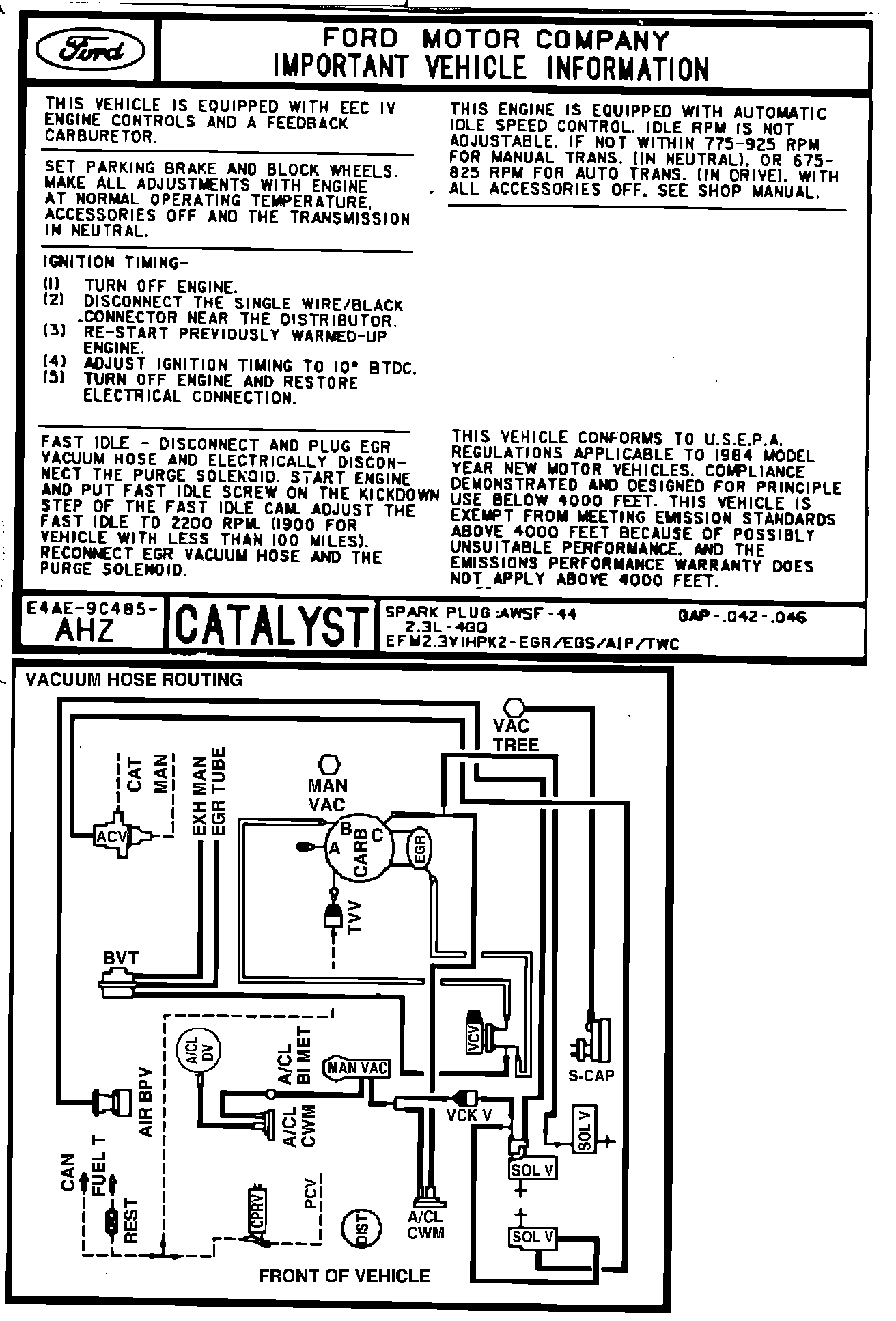 MODEL YEAR: 1984 ENGINE: 2.3L