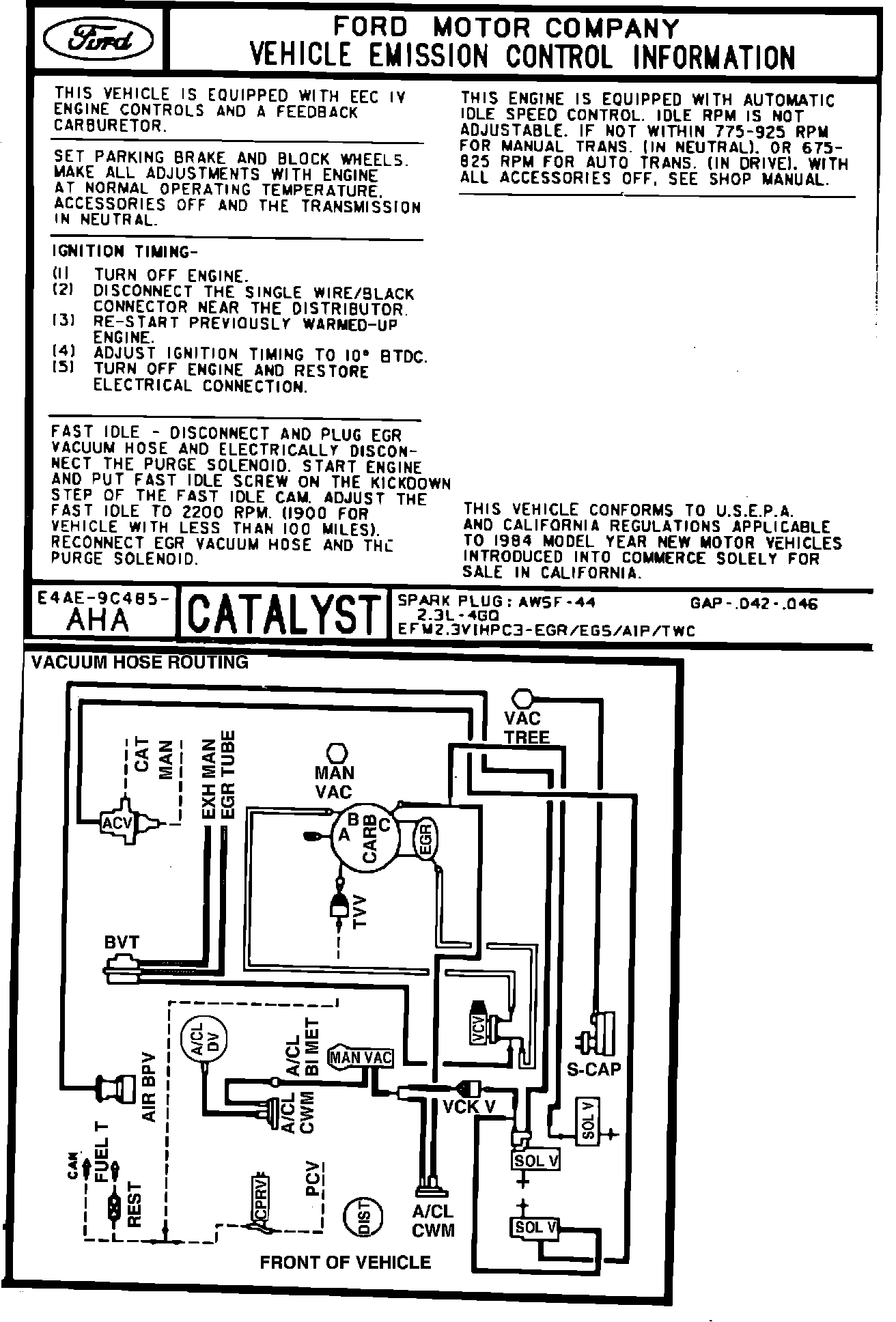 MODEL YEAR: 1984 ENGINE: 2.3L