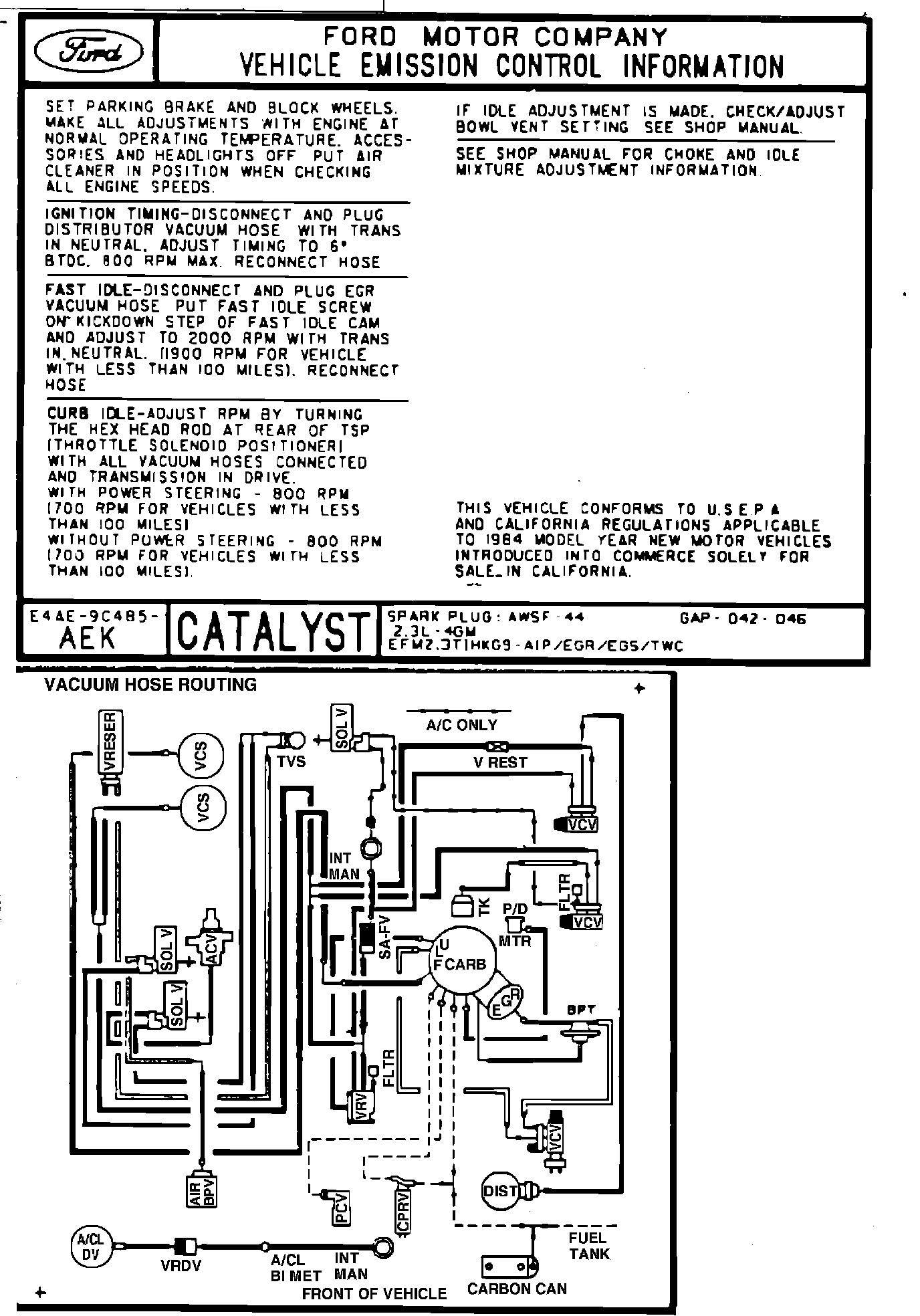 MODEL YEAR: 1984 ENGINE: 2.3L