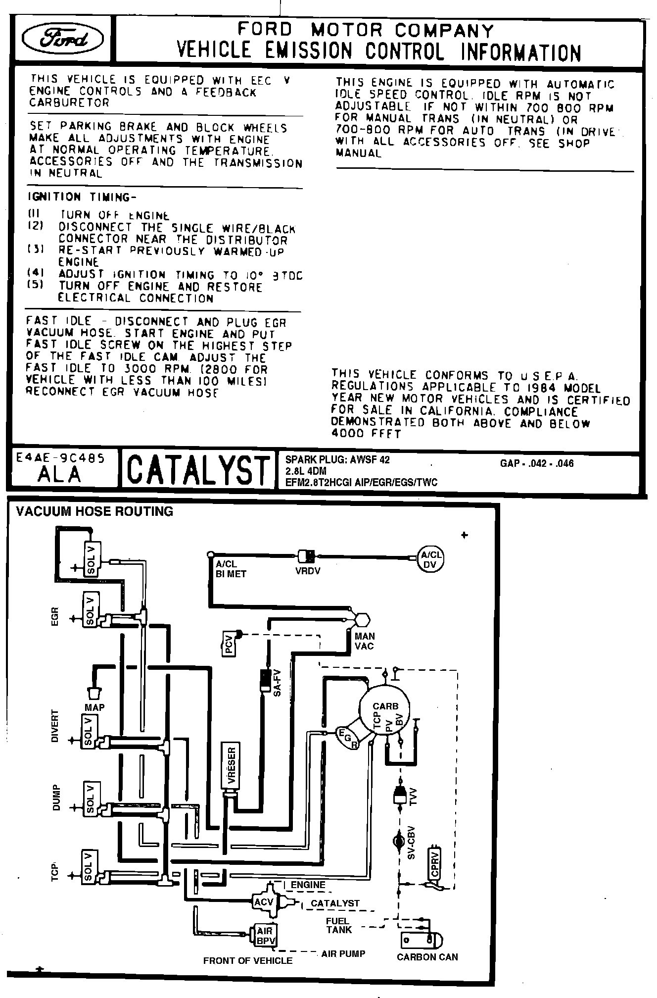 MODEL YEAR: 1984 ENGINE: 2.8L