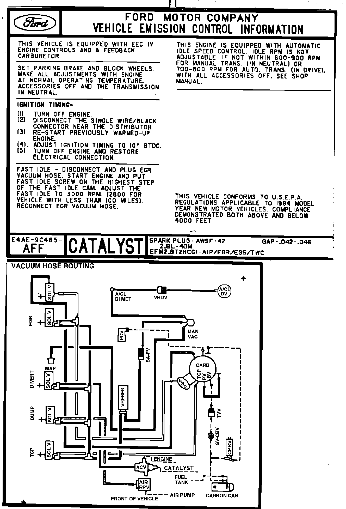 MODEL YEAR: 1984 ENGINE: 2.8L