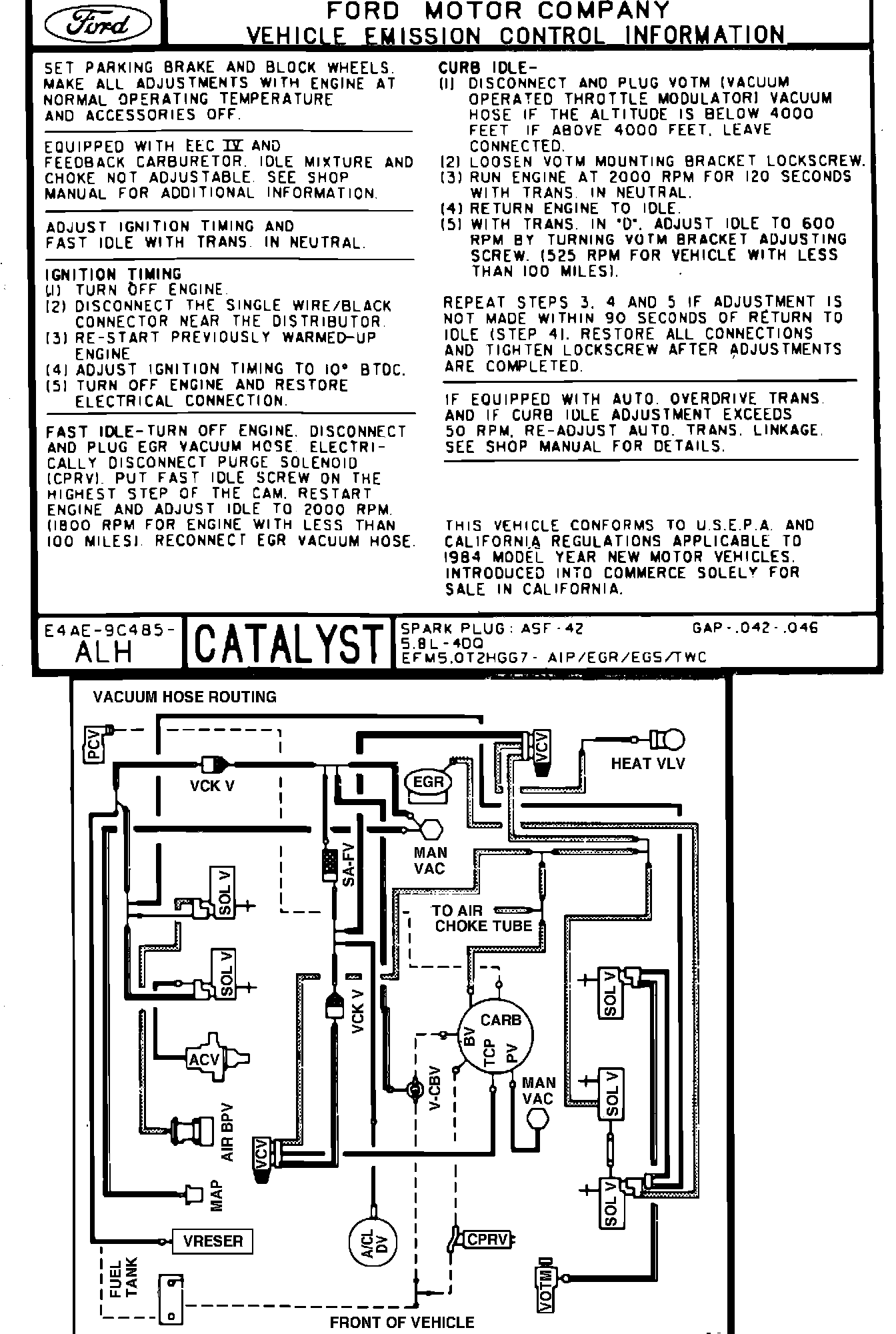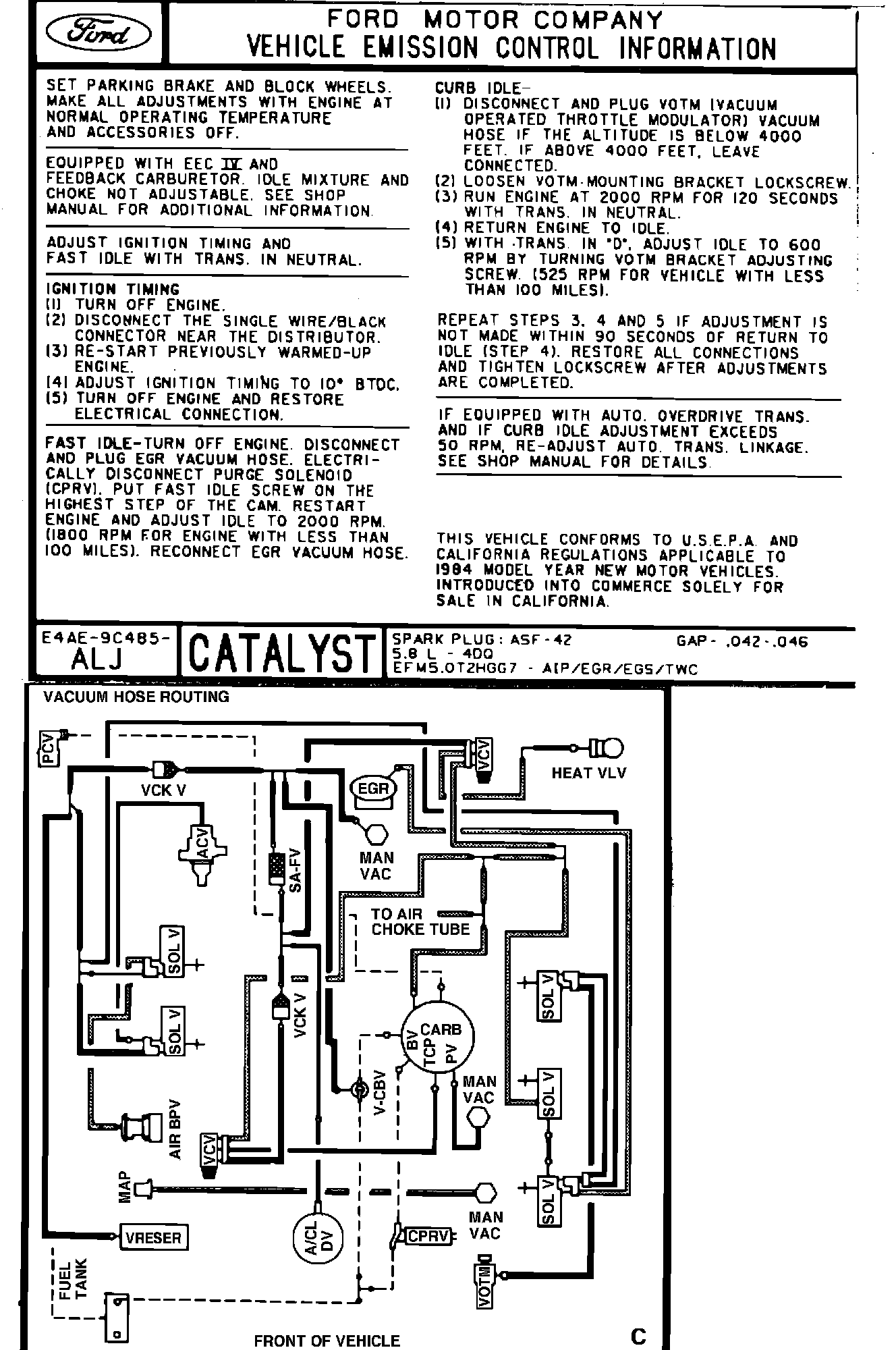 MODEL YEAR: 1984 (F-Series & Bronco) ENGINE: 5.8L