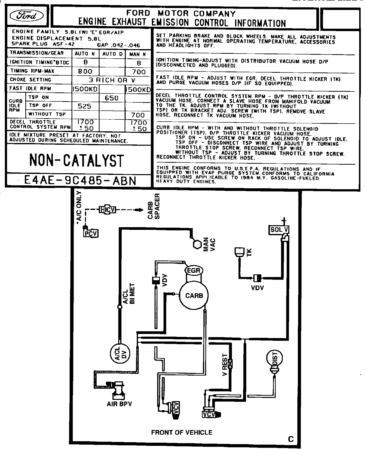 MODEL YEAR: 1984 ENGINE: 5.8L