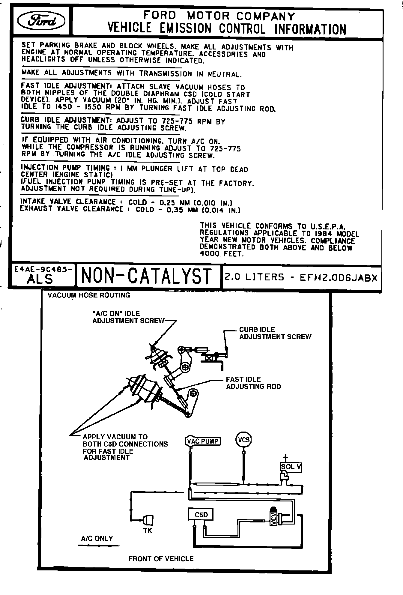 MODEL YEAR: 1984 CAR ENGINE: 2.0L