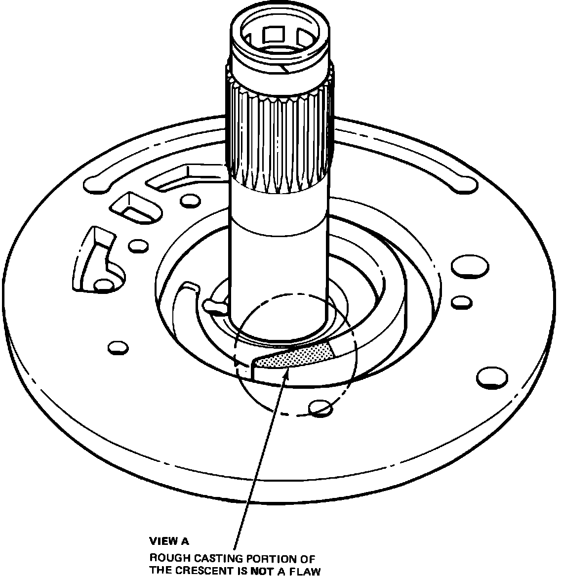 View A in Figure 34 identifies the area of concern on the crescent casting. The rough appearance of the casting is intentional and is not a flaw.