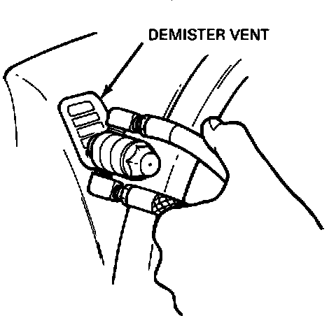 8. Restart engine and set control for DEFROST position. Adjust temperature setting until discharge air from defroster outlet feels slightly cooler. Turn ignition off. Spray as in Step 6.