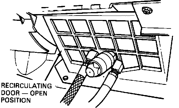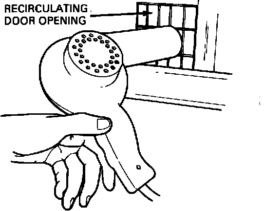 11. Dry the A/C system completely by placing a 1500 watt hot air gun at the recirculate air inlet. Operate the A/C system on high blower for 1/2 hour.