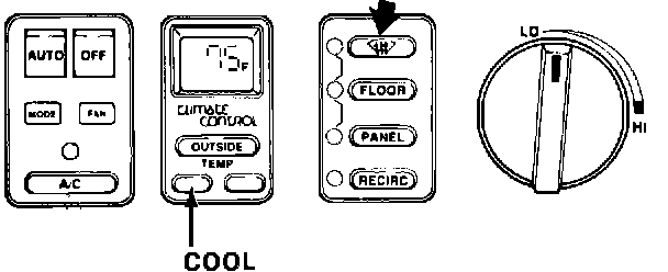 NOTE: It will be necessary to operate vehicle engine during this procedure to provide a source of vacuum required by some A/C control systems and to prevent battery drain.
