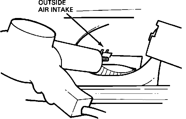 10. Restart engine. Set A/C system control to AUTO position and adjust temperature setting to 60~ F. The airflow should be from panel register openings with recirculating inside air. Spray the remainder of the disinfectant into the recirculate air inlet. Point disinfectant spray toward center of blower wheel if visible; otherwise, direct spray toward center of airflow path. All of the disinfectant must be used for maximum effectiveness.