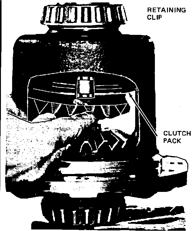 - Clutch retainer clips. If wear is evident on any one of the retainer clips, all four clips must be replaced.
