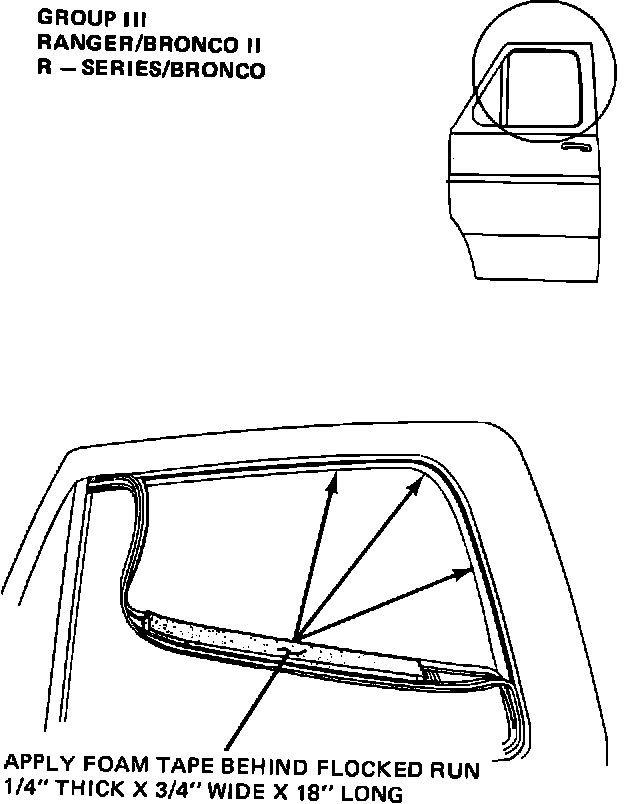 RANGER/BRONCO II - F-SERIES/BRONCO Concern -The door glass pushes the flocked run into the door frame at upper rear corner resulting in a wind noise.