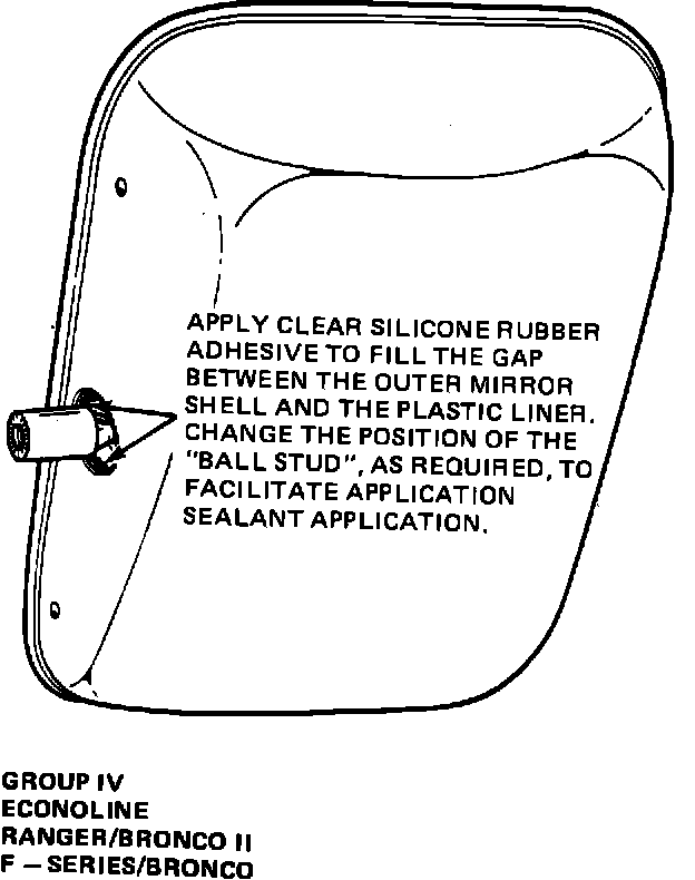 Correction - Apply clear silicone rubber adhesive to fill gap between mirror outer shell and plastic liner at ball stud hole as shown in Figure 23.