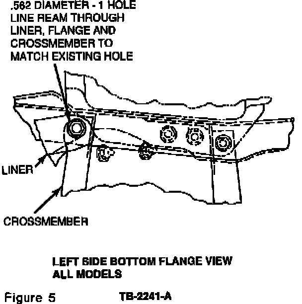 3. Line ream the existing hole through the liner, frame flange and crossmember to 9/16" (14.228 mm), Figure 5.