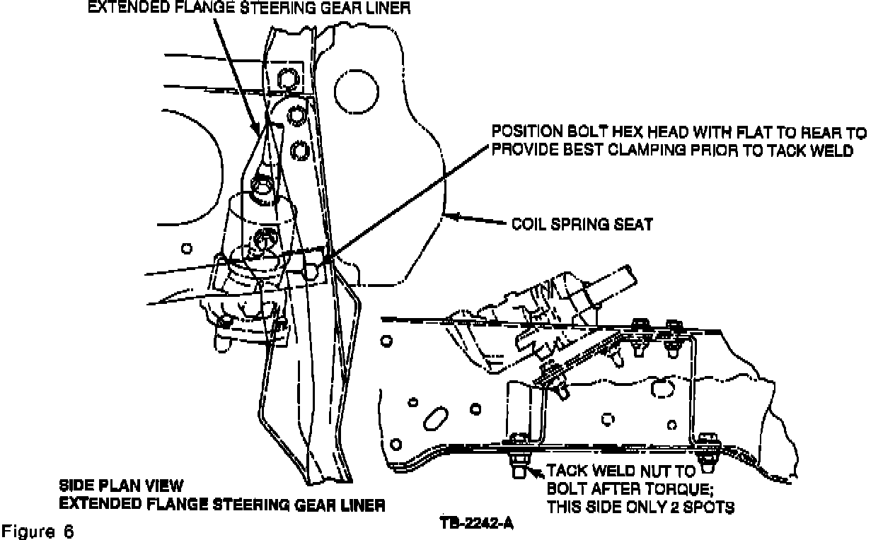 c. Tighten the nut to 140 4-3 lb.ft. (190 4-4 N-m) and tack weld the nut to the bolt after tightening.