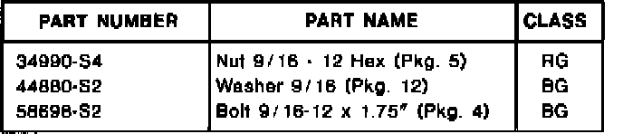 4. Install a 9/16" Grade 8 nut (34990-S4), bolt (58698-S2) and washer (44880-S2), with nut/washer on the bottom, Figure 6.