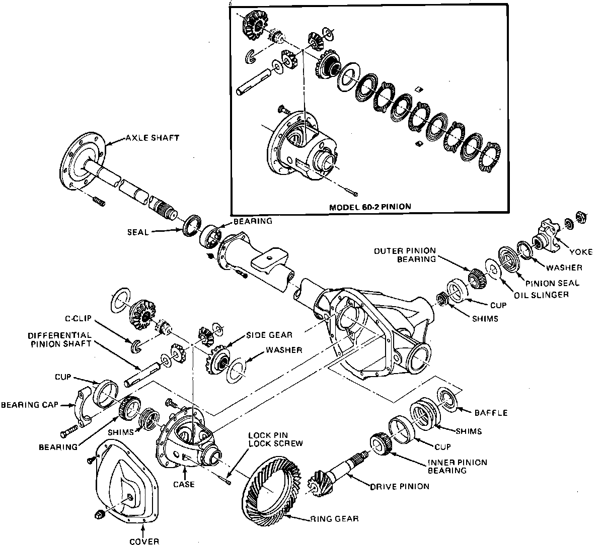 When changing ratios on the different series of rear axles, it may be necessary to change the differential case along with the ring gear and drive pinion.