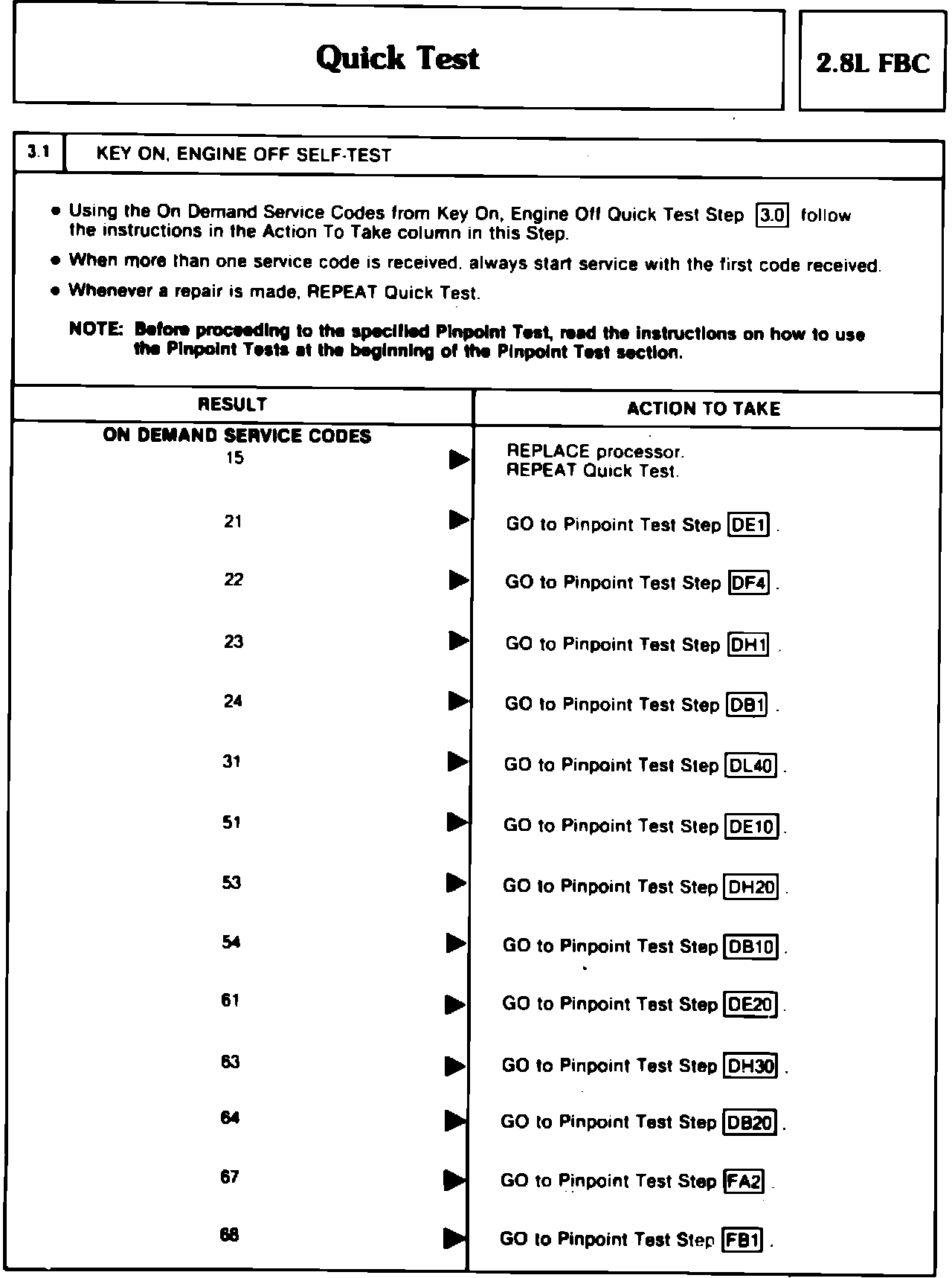 KOEO Self Test And Service Codes 15 - 68 (2.8L FBC):