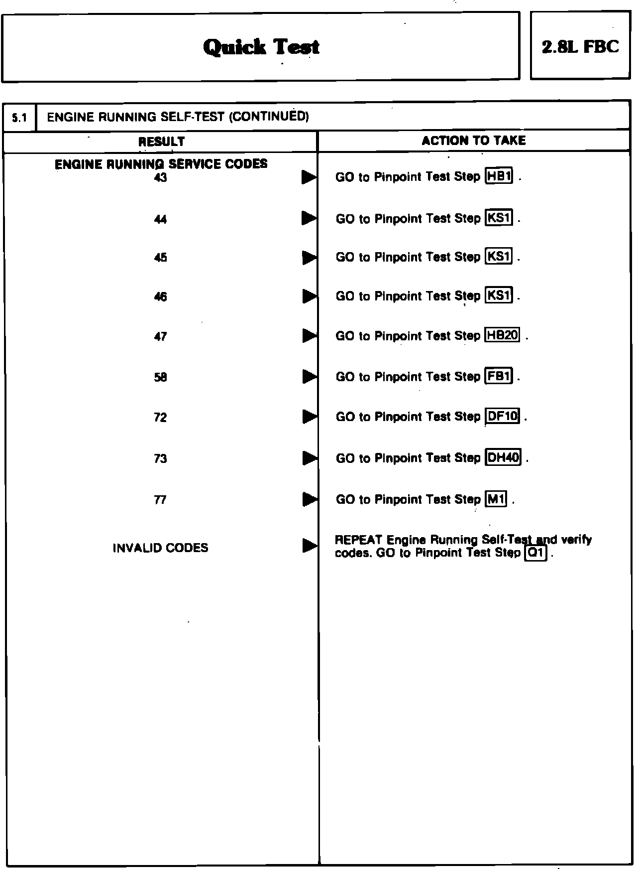 Engine Running Self Test And Service Codes 43 - 77 (2.8L FBC):