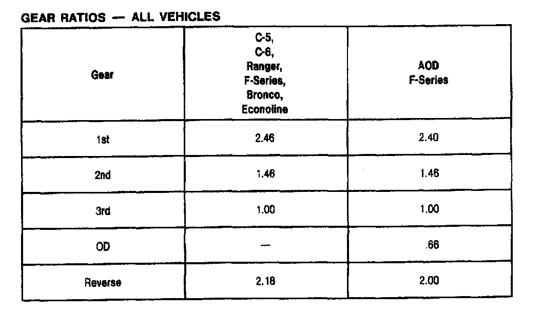 C5 3-spd A/T, Gear Ratios: