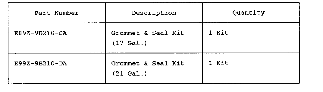To order a replacement fuel tank, call the Recall Hotline at 1-800-325-5621 and ask for a Fuel Tank kit for program 98M03. Be prepared to supply PA code, VIN and fuel tank size. All 1988 and some early 1989 Aerostars have a 17 gal. fuel tank. Most 1989 and all 1990 have a 21 gal. tank. IDENTIFICATION: 17 gallon tanks use straps that insert into the BOTTOM of the "frame" rail. The 21 gallon tanks use straps that insert into the SIDE of the frame rail.