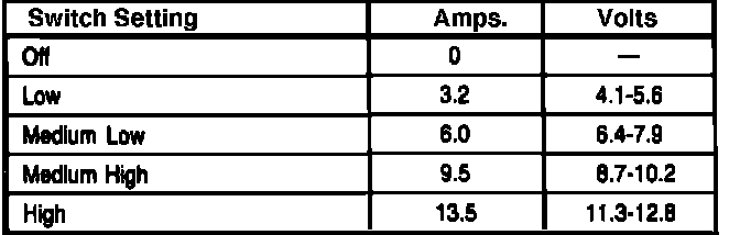 Fig. 45 Blower motor current draw & voltage test chart.: