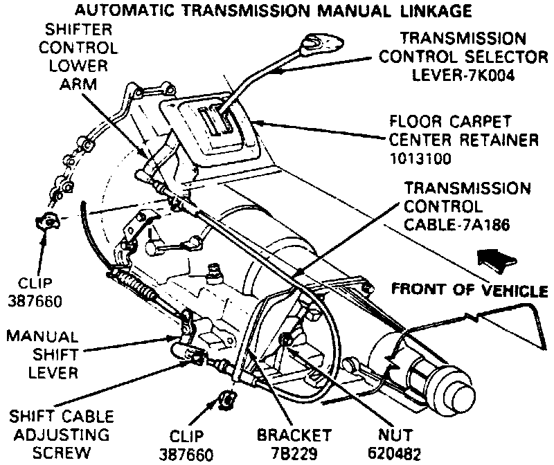 5. Check for engagement in P. Control lever must move to right when engaged in P detent. Check transmission control lever in all detent positions with engine running to ensure correct detent/transmission action, readjusting as necessary.