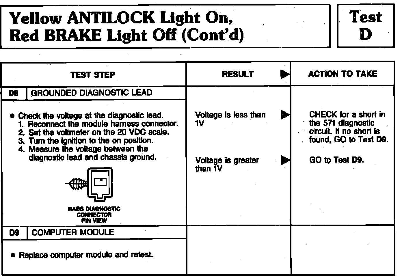 Test D Antilock Light On, Brake Light Off
