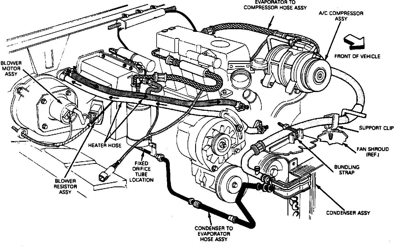 6. Reverse procedure to install. Use new O-rings lubricated with refrigerant oil.