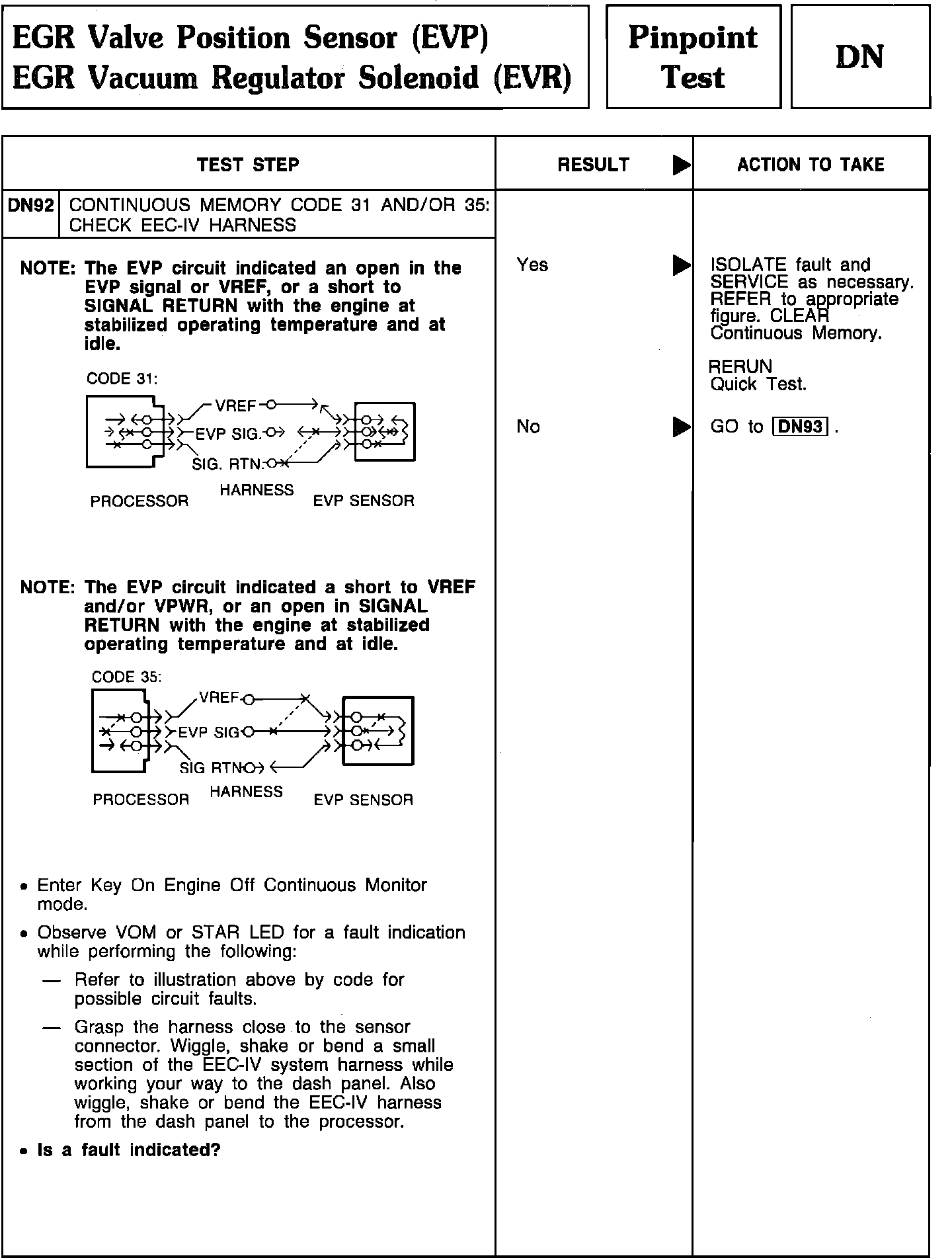 Pinpoint Test DN92 - EGR Valve Position Sensor (EVP)/EGR Valve Regulator (EVR):
