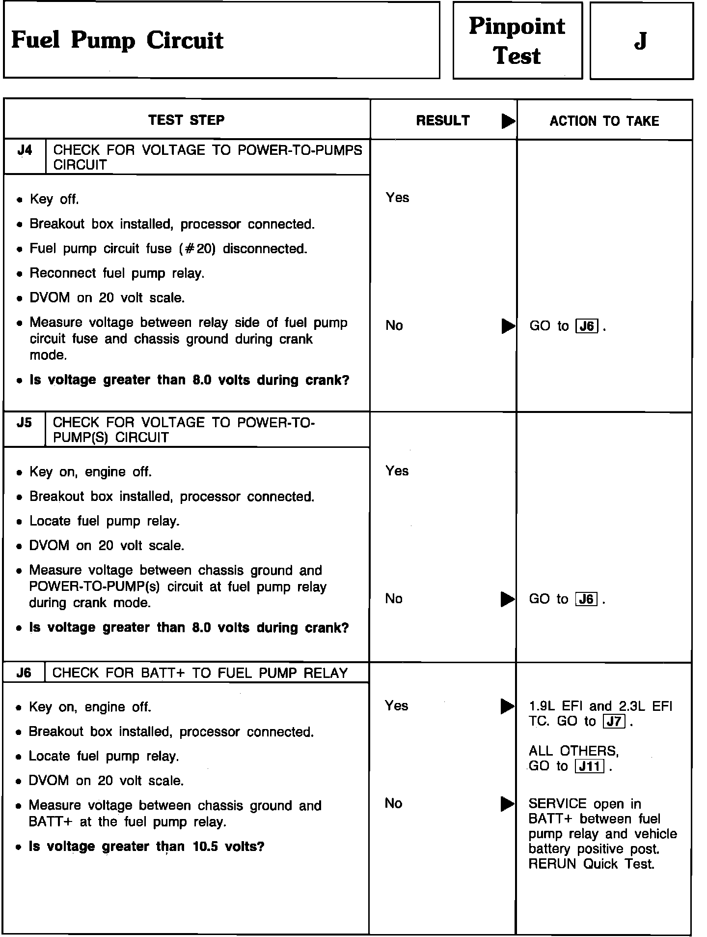 Pinpoint Test J4 Thru J6 - Fuel Pump Circuit: