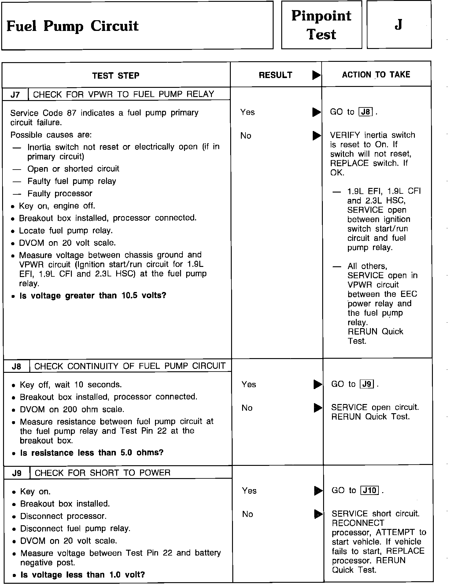 Pinpoint Test J7 Thru J9 - Fuel Pump Circuit: