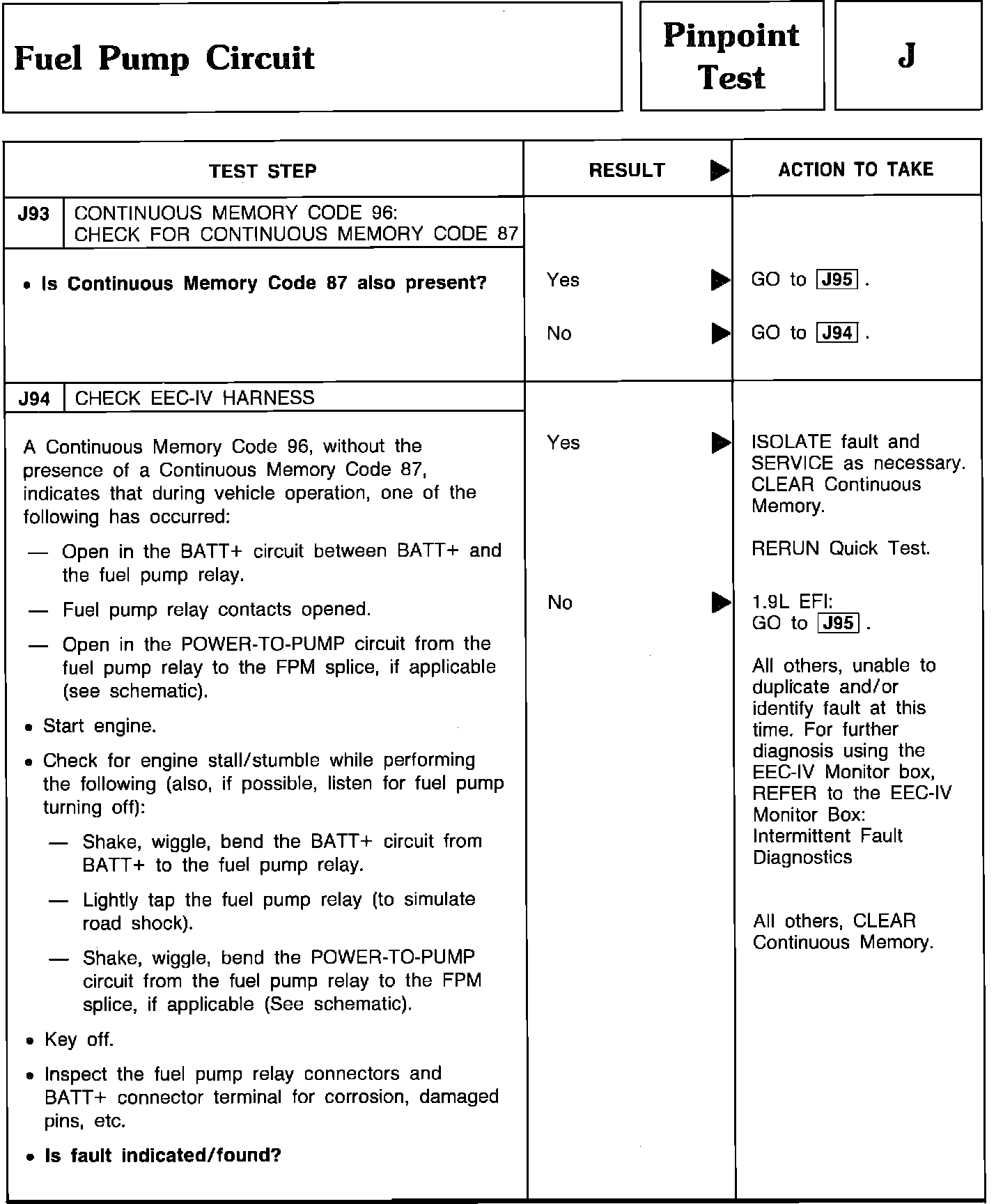 Pinpoint Test J93 & J94 - Fuel Pump Circuit: