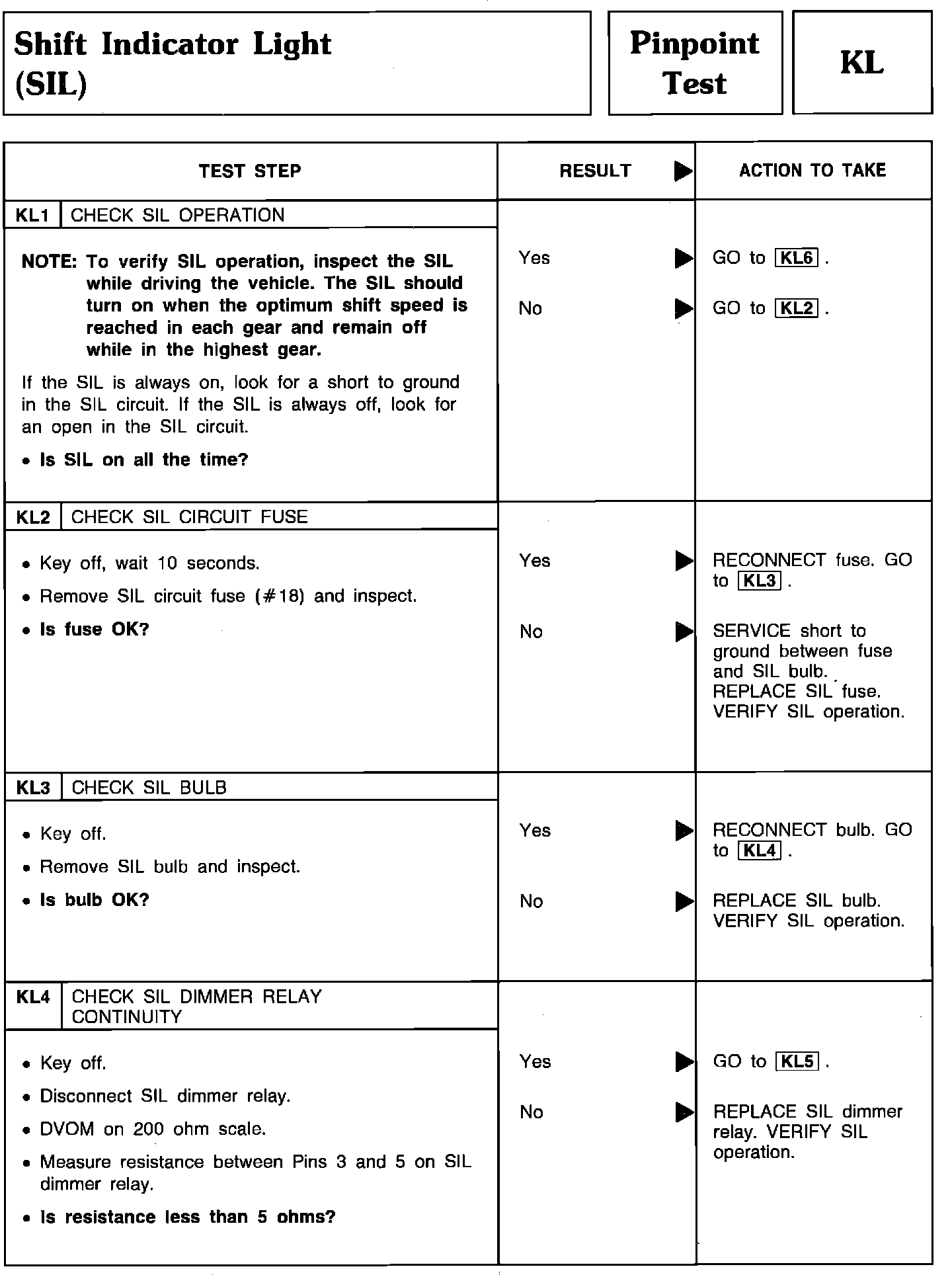 Pinpoint Test KL1 Thru KL4 - Shift Indicator Light (SIL):