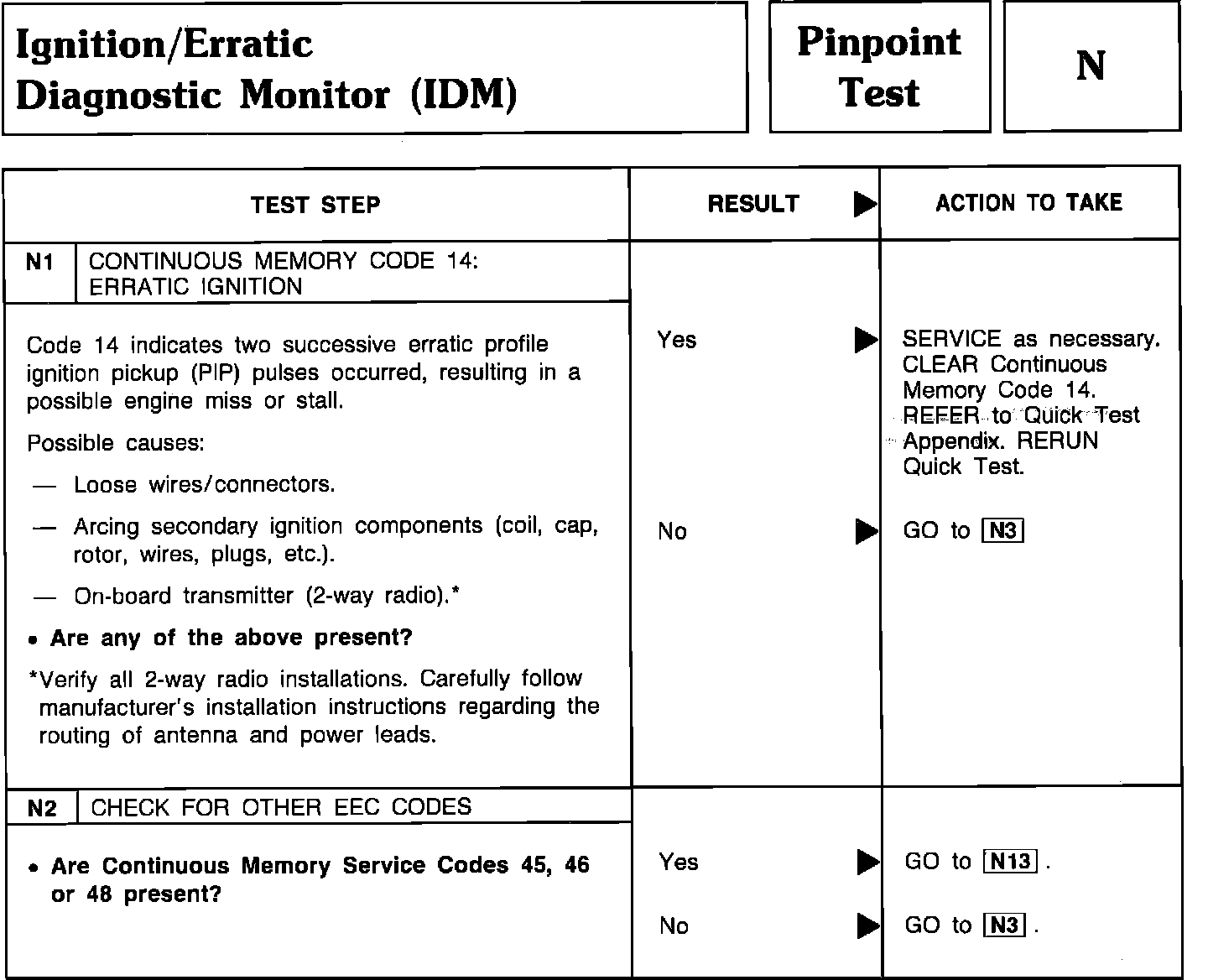 Pinpoint Test N1 & N2 - Ignition Diagnostic Monitor (IDM):