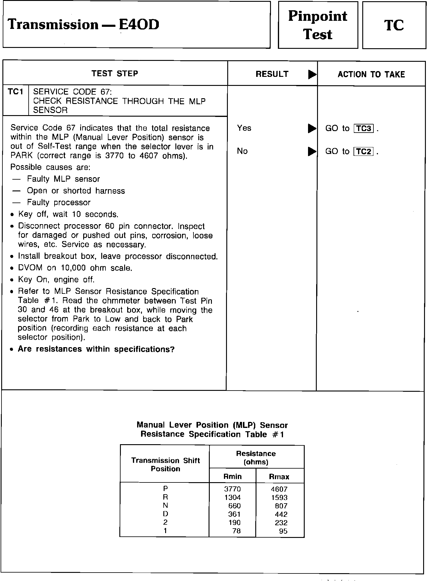 Pinpoint Test TC1 - Transmission E4OD: