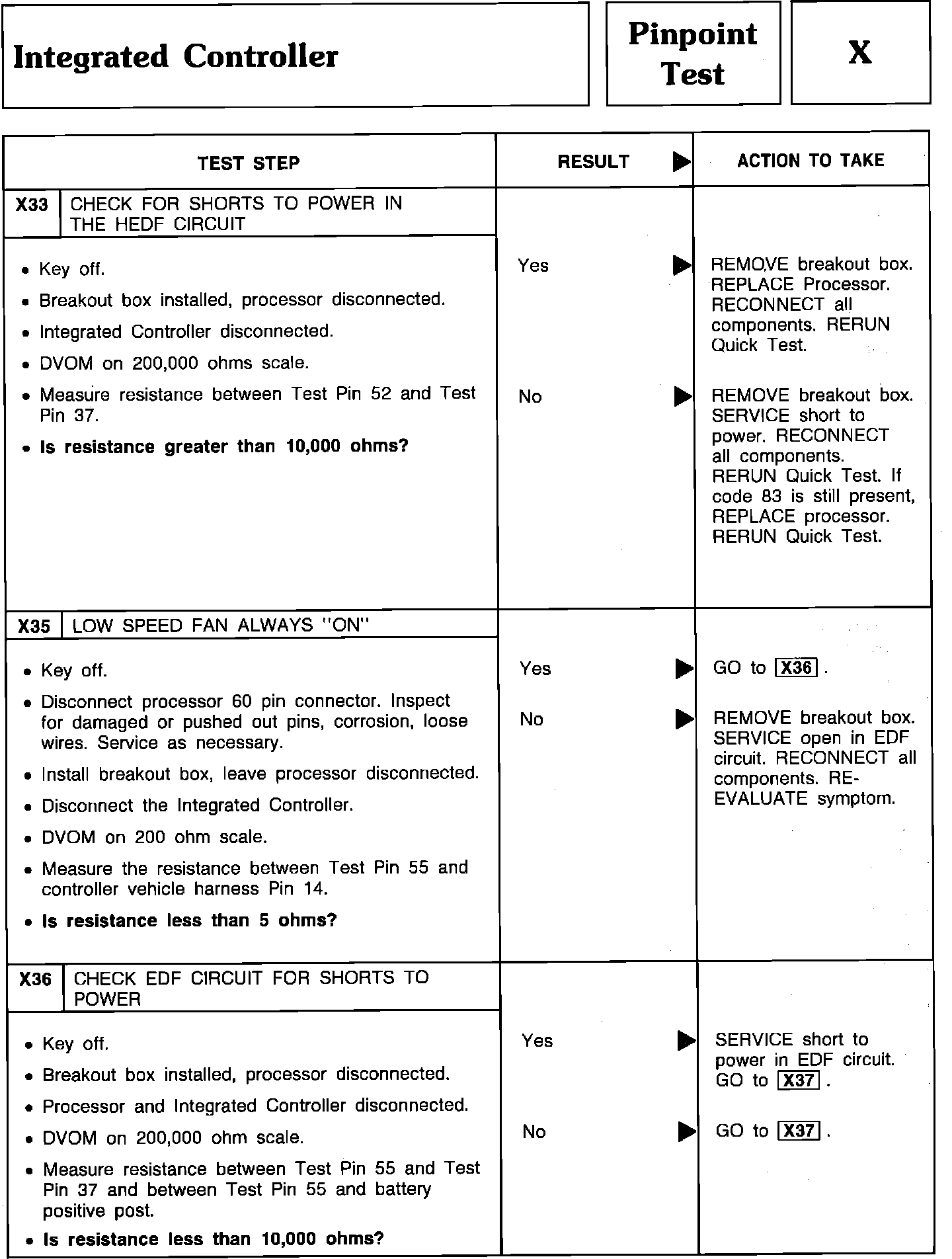 Pinpoint Test X33 Thru X36 - Integrated Controller: