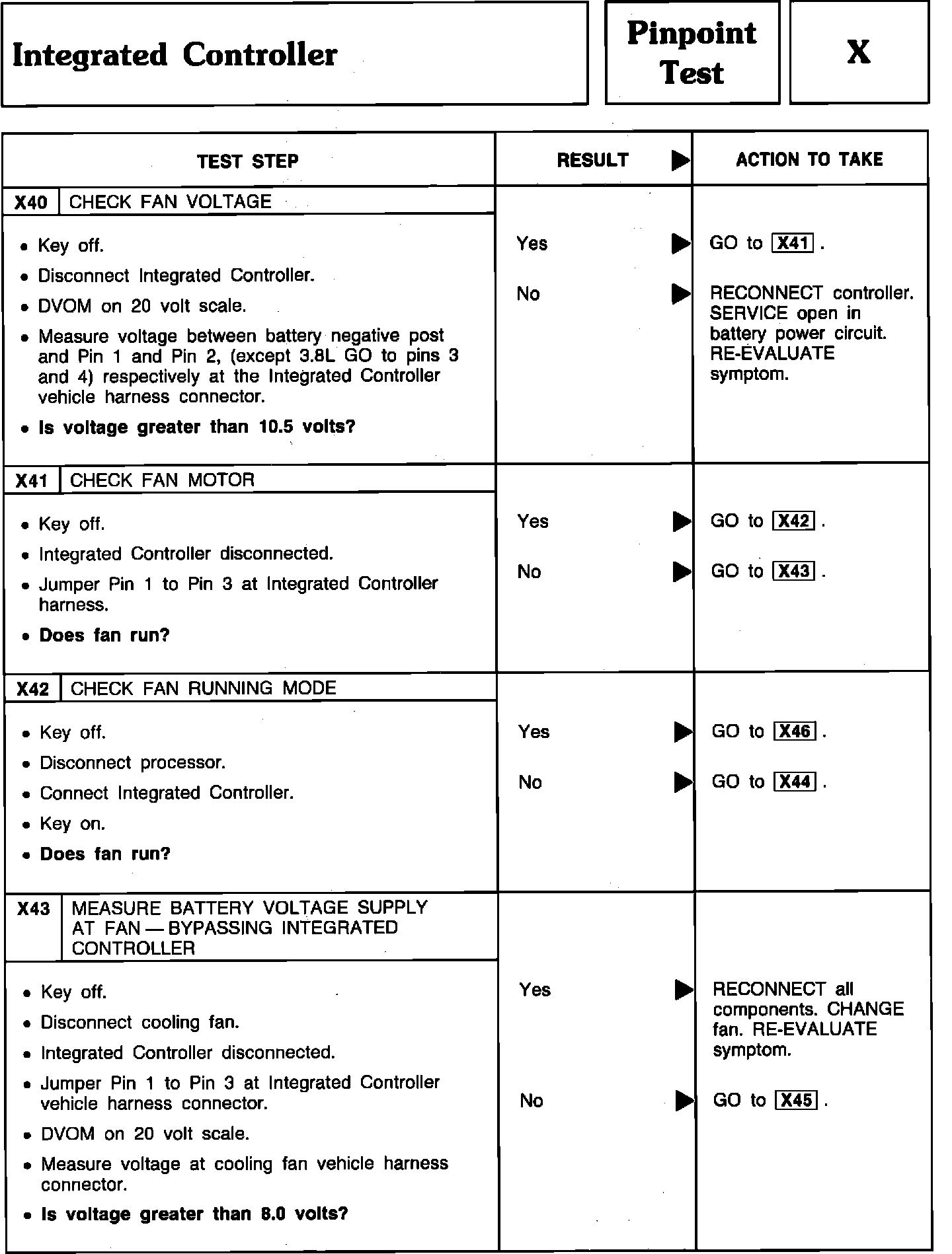 Pinpoint Test X40 Thru X43 - Integrated Controller: