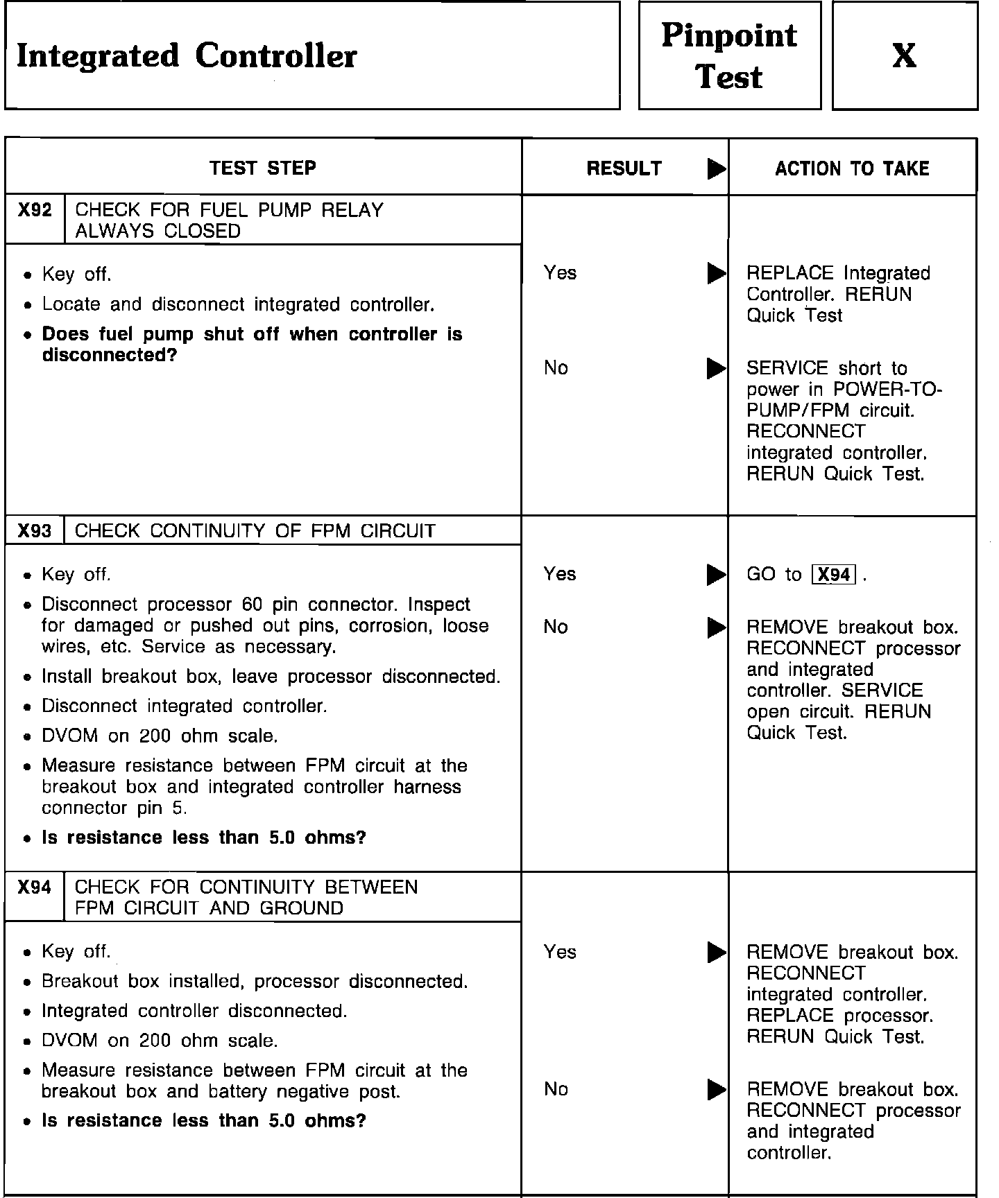 Pinpoint Test X92 thru X94 - Integrated Controller: