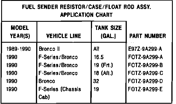 ACTION: Install a fuel pre-calibrated sender assembly. Attach it with two screws in the reservoir case, Figure 1. Refer to the following Fuel Sender Resistor/Case/Float Rod Assembly Application Chart for correct parts usage.