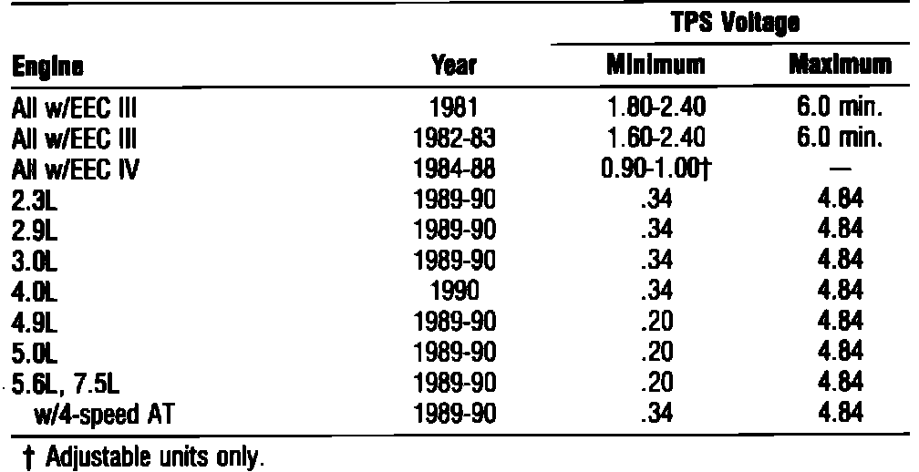 THROTTLE POSITION SENSOR SPECIFICATIONS: