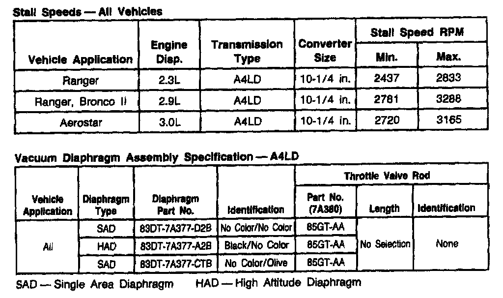 A4LD 4-spd A/T, Stall Speeds (Explorer):