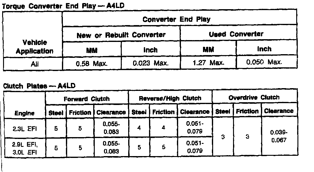 A4LD 4-spd A/T, Converter End Play/Clutch Plates (All):
